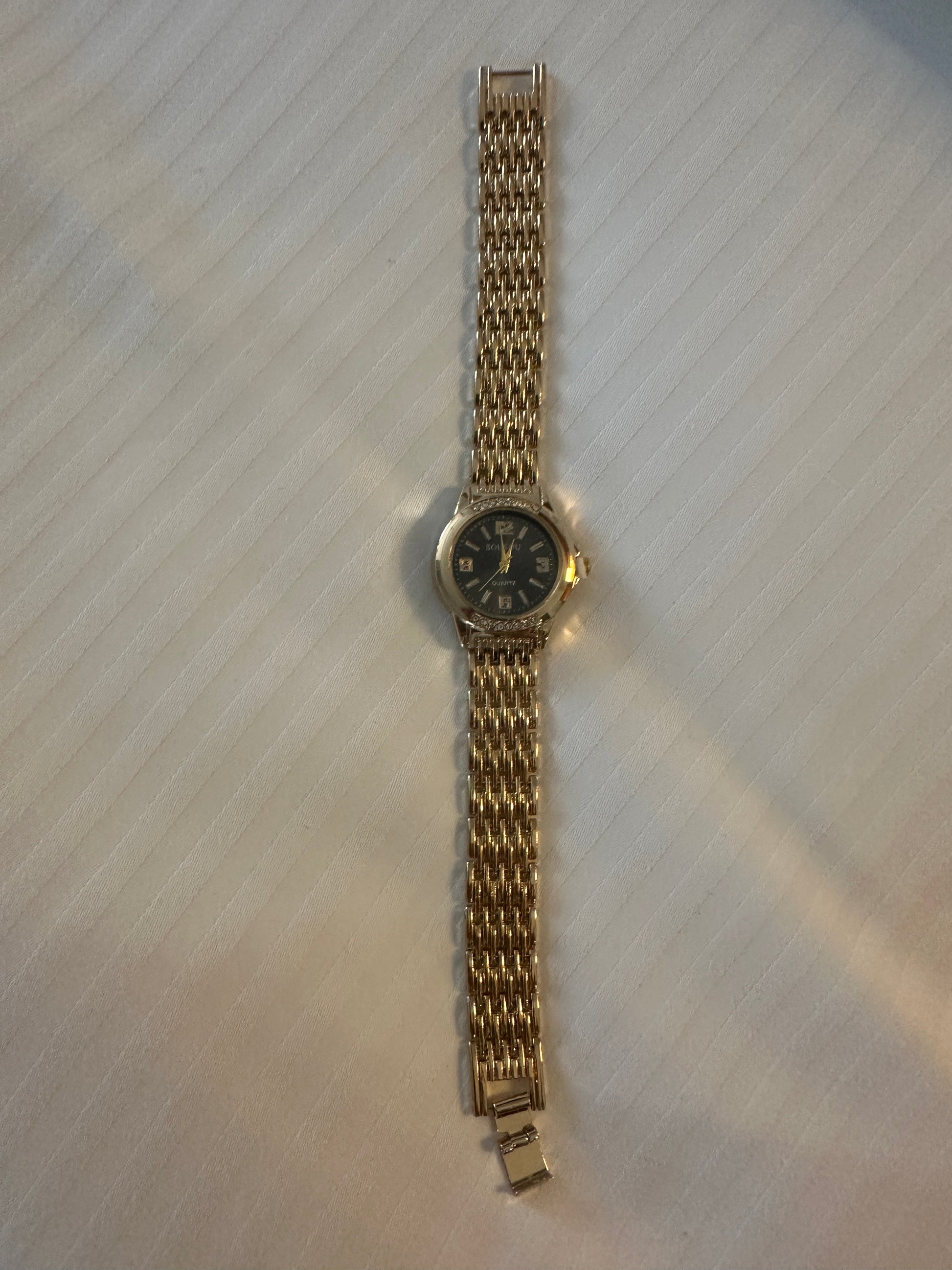 Adjustable strap• black dial• gold• metal detail• minimalistic contemporary design
