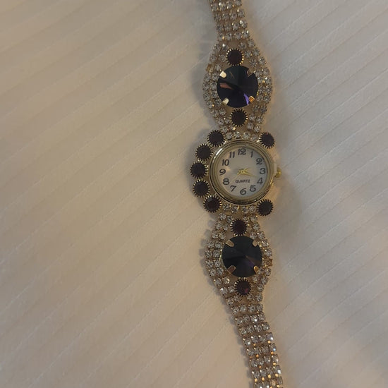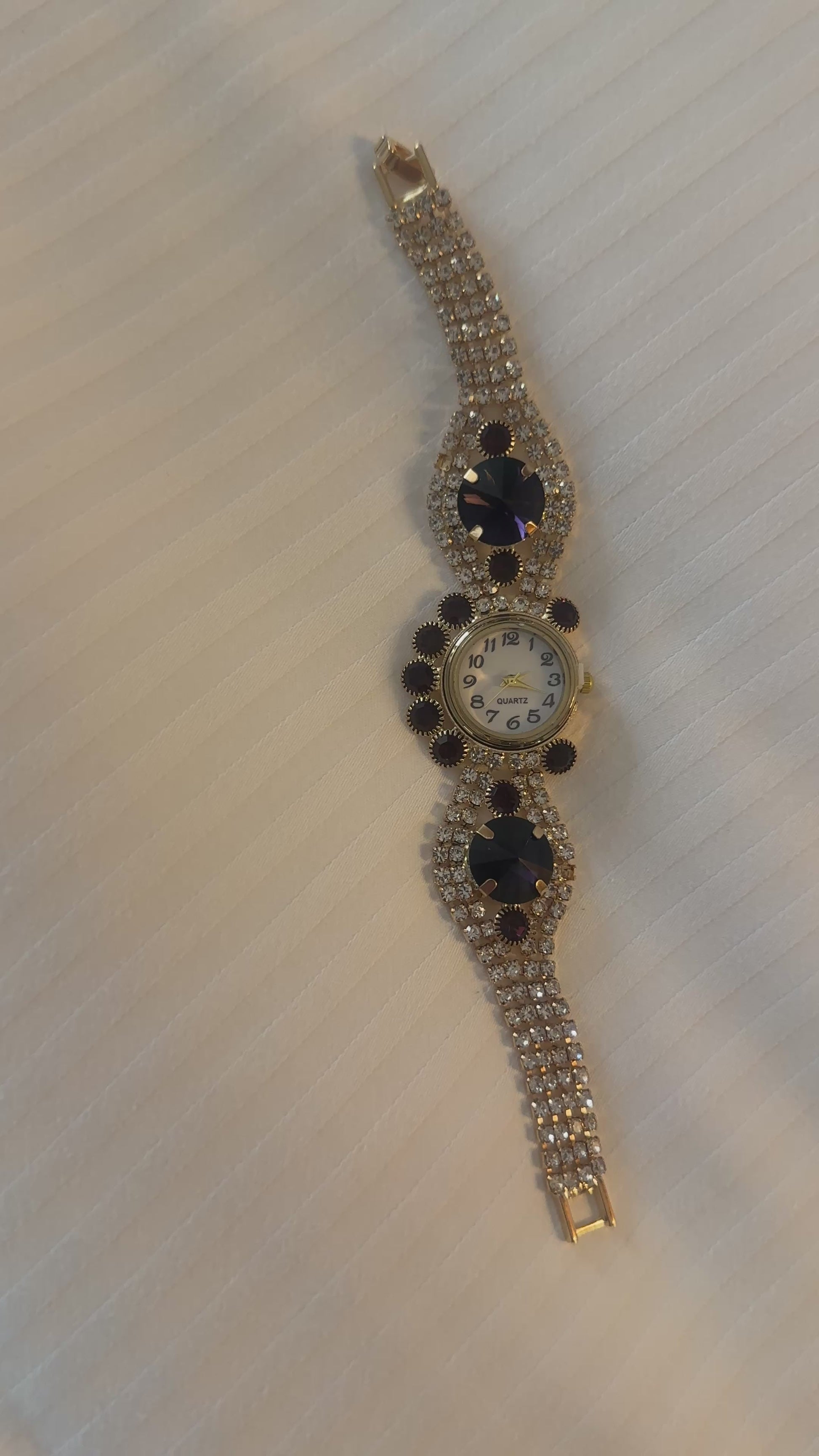 •Adjustable strap• circle dial• gold and purple• diamanté and metal detail• minimalistic elegantly design