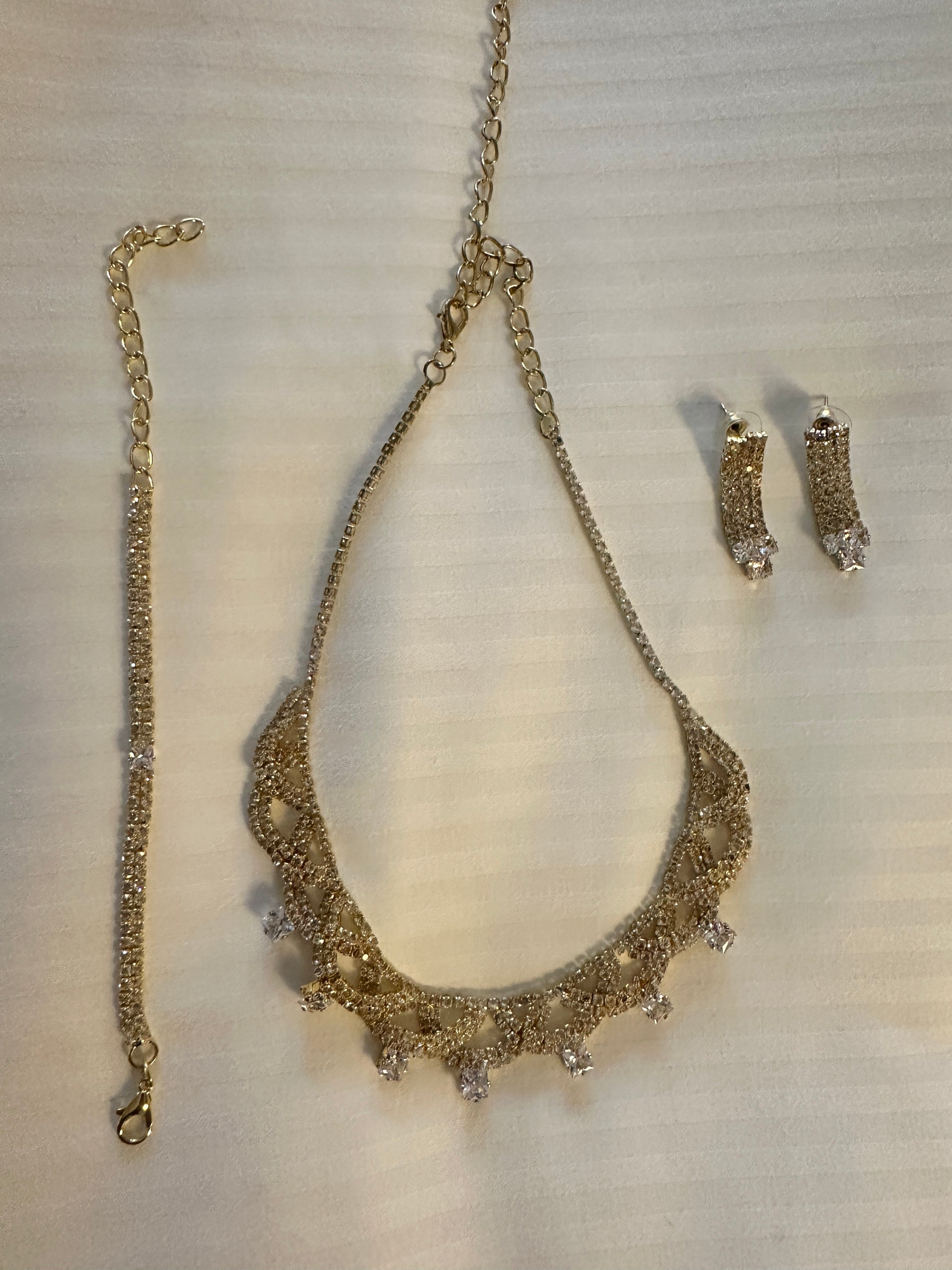 Contemporary minimalistic elegant design. Beautiful set includes necklace, earrings, bracelet.
